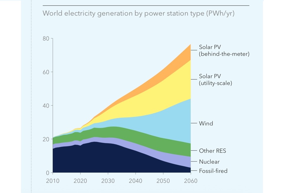 Уже в 2030 году установленная мощность солнечной энергетики в мире достигнет 6500 ГВт, а к 2060 году 28300 ГВт.
